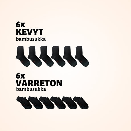 Kun ostat useamman parin samaa mallia, putoaa hinta reippaasti. Tuotesivulla näet taulukon pakettihinnoista. Lisäksi voit ostaa tuotesettejä, jotka koostuvat useammasta eri mallista. Niissä säästät edelleen hieman verrattuna, jos ostaisit ne erikseen.