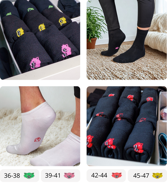 Olemme suomalainen Helsingin Kalliosta toimiva yritys, jonka tavoitteena on mukava tunne jaloissasi sekä sukkien värikoodauksen tuoma helpotus arkeesi.